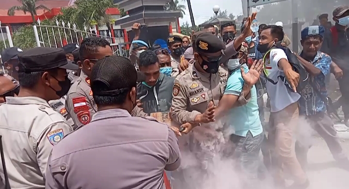 Namun aparat kepolisian yang mengamankan aksi demo tersebut tidak mengizinkan. Massa berkali-kali meminta untuk diizinkan memasuki halaman Polda NTT namun hasilnya tetap sama.