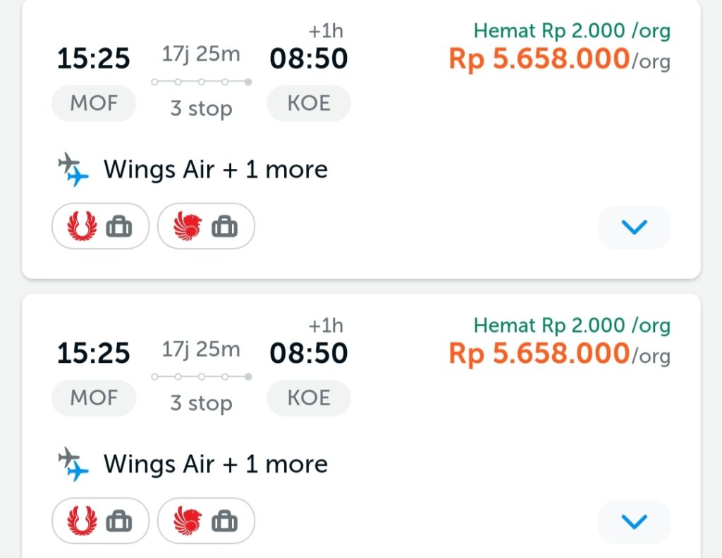 Penerbangan dari Maumere tujuan Kupang pada tanggal yang sama pun lebih tinggi lagi menembus harga Rp 5,6 juta.
